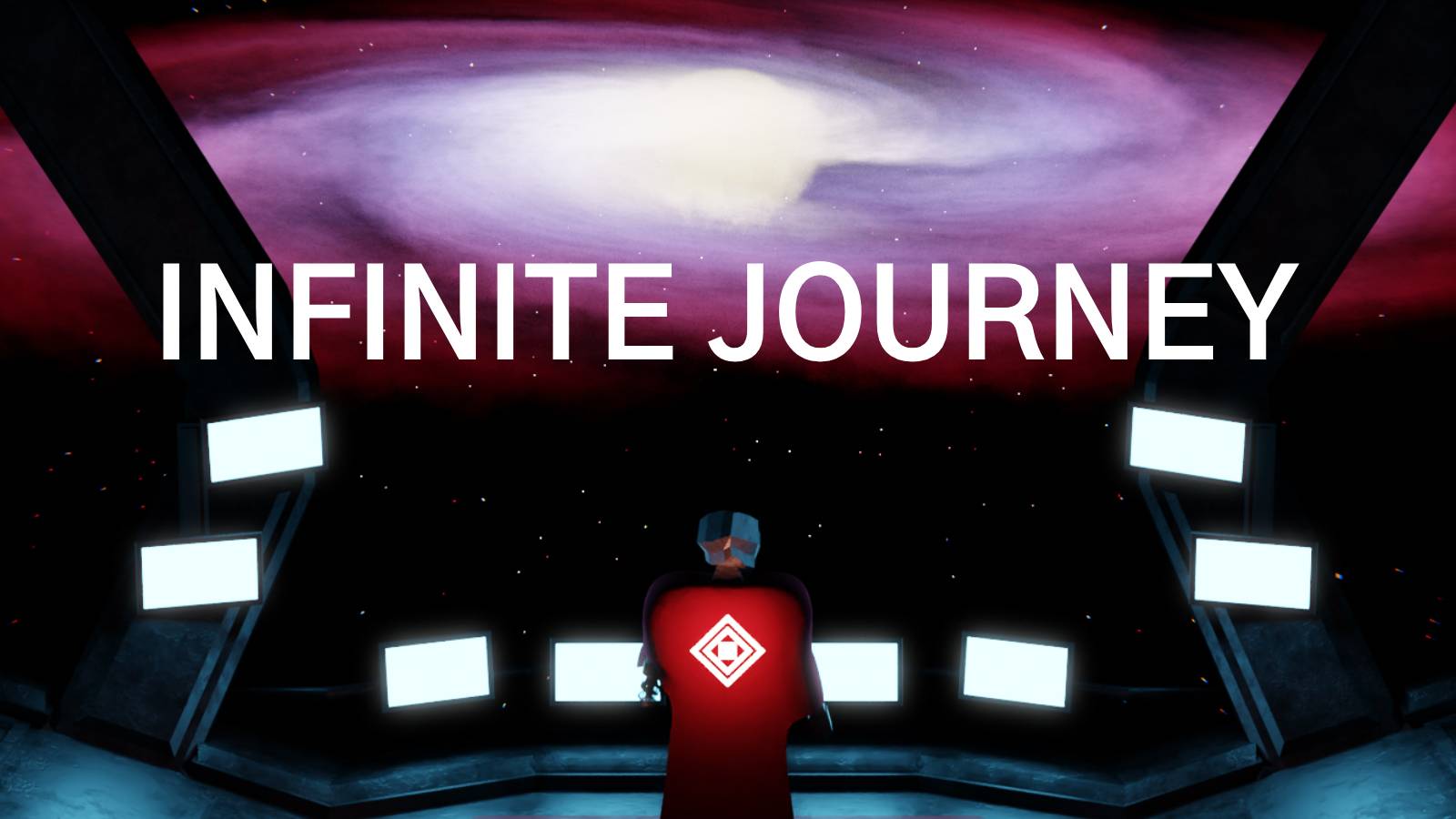 An Animated background which shows a stunning sight of a galaxy, from the perspective of a interstellar starship's bridge.